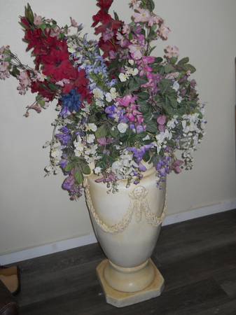 Large Floor Vase @ Antique White Glaze ~with flowers~