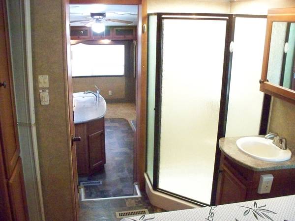 very clean, has new upgraded queen mattress, large shower, island kitchen, has flat screen tv, stereo system, interior is very clean everything works, there is room for 2 recliners and a love seat,couch, wieghs 8733 LBS can help with delivery and setup if needed, This Is A Nice RV $10500 Call David at 903-327-5008