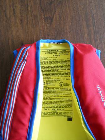 Stearns Child Life Vest - RED Child Life Jacket - 30-50 lbs -- $7.00 Child Boating Vest Blue/Green Child Life Jacket -Size SMALL -30-50 lbs ~made in USA --- $5.00 Vintage Casad Youth Ski Vest Purple...